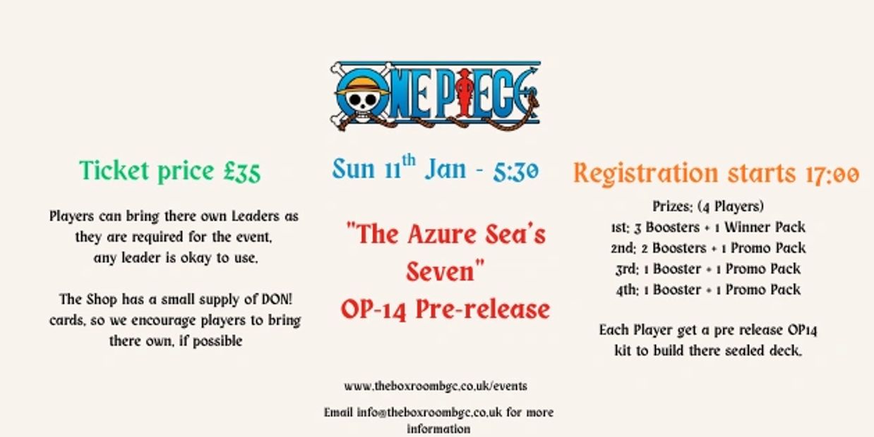 We are excited to be holding first Pre-release event for one piece OP14 (The Azure Sea's Seven)